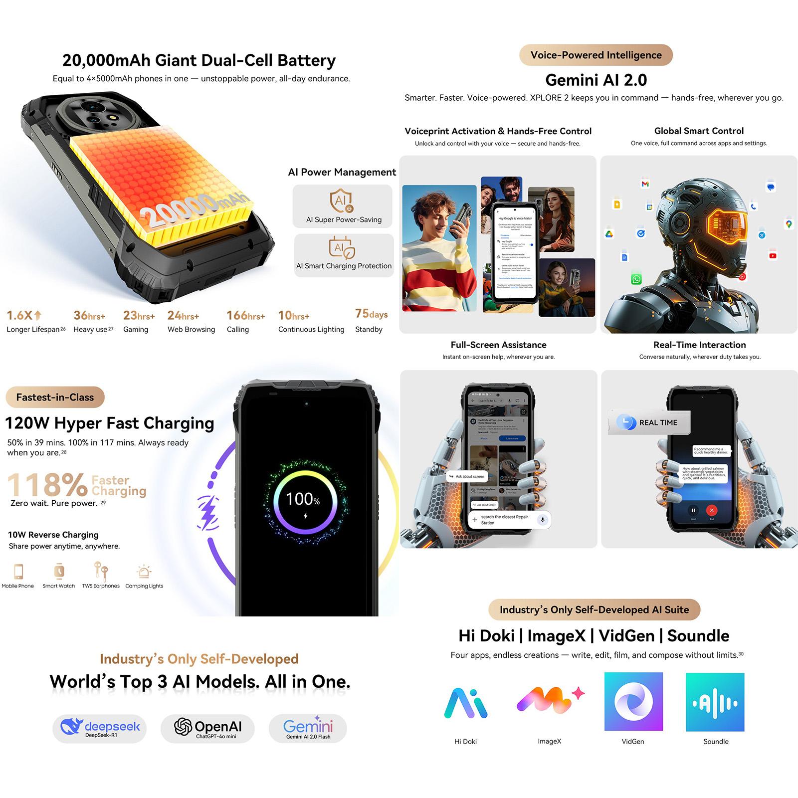 Blackview XPLORE 2, 5G, 16-48GB RAM+1TB ROM, Android 15, Dual 50MP Samsung Cameras with OIS, Night Vision, 20,000 mAh battery, 2-year warranty
