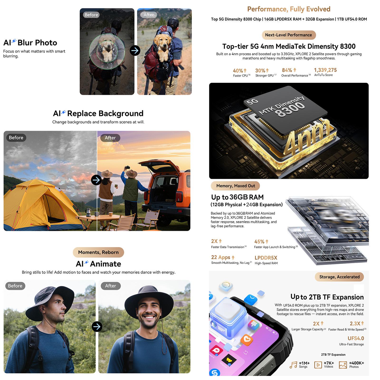 Blackview Satellite XPLORE 2, 5G, 12-36GB RAM+256GB ROM, Android 15, Dual 50MP Samsung Cameras with OIS, Night Vision, 20,000 mAh battery, 2-year warranty